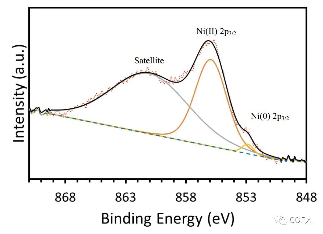 最后,作者用XPS光谱表明Ni-DBA-2D-COF中同时存在Ni(II)和Ni(0)。见图6.