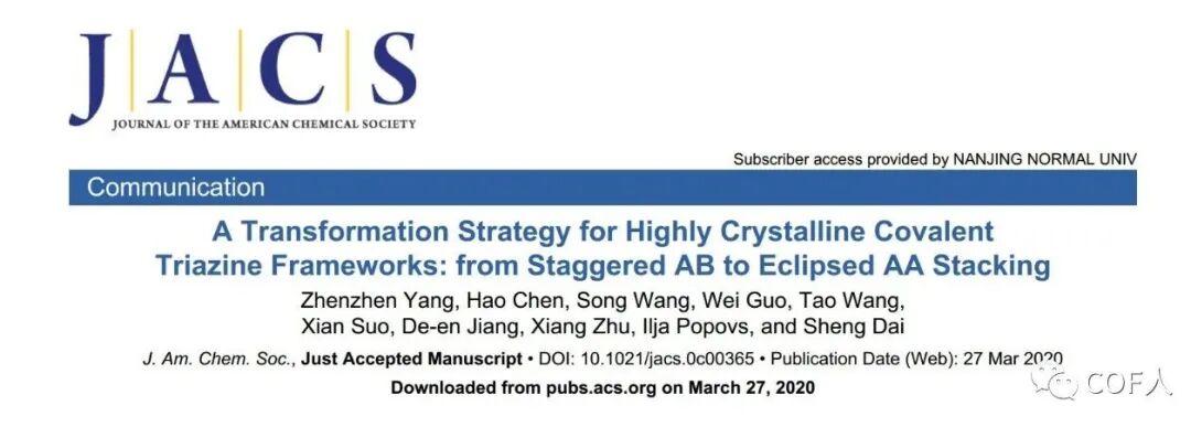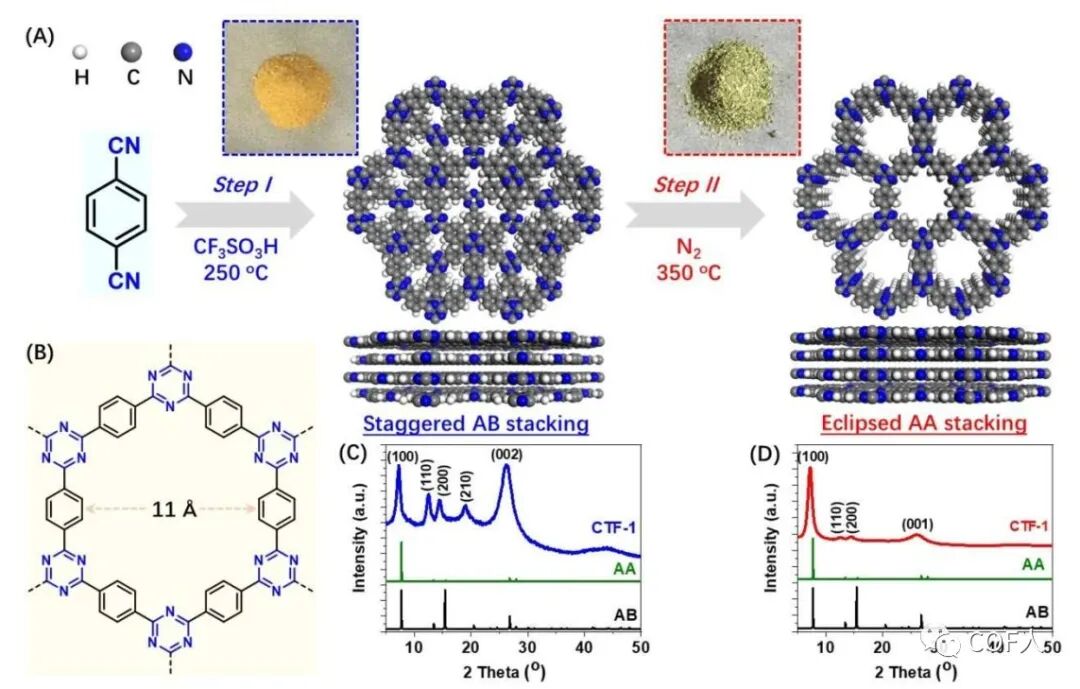 【COF第九弹】高晶态CTFs从AB 到 AA堆积的转变 !