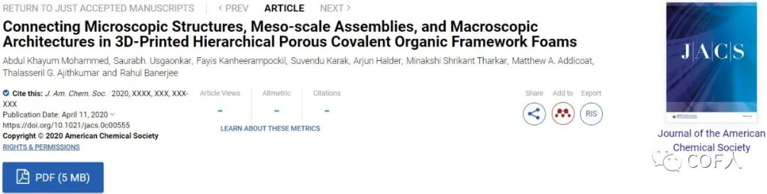 [COF第12弹]3D 打印分级多孔COF海绵!!连接微观-介观-宏观三大尺度!!