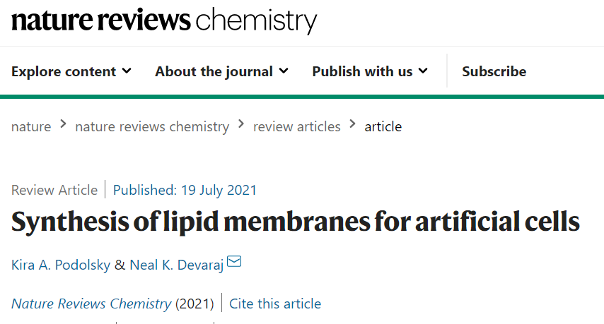 Nature Reviews Chemistry:脂质膜的合成,用于人造细胞