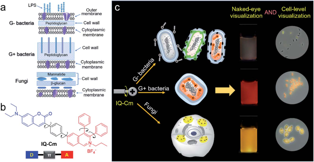 Shi, X., et al, Killing G(+) or G(−) Bacteria? The Important Role of Molecular Charge in AIE‐Active Photosensitizers. Small Methods, 2020