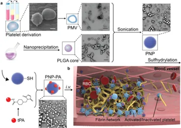 Xu, J., Zhang, Y., Li, S., Nie, G. et al, Engineered Nanoplatelets for Targeted Delivery of Plasminogen Activators to Reverse Thrombus in Multiple Mouse Thrombosis Models. Adv. Mater. 2019, 1905145.