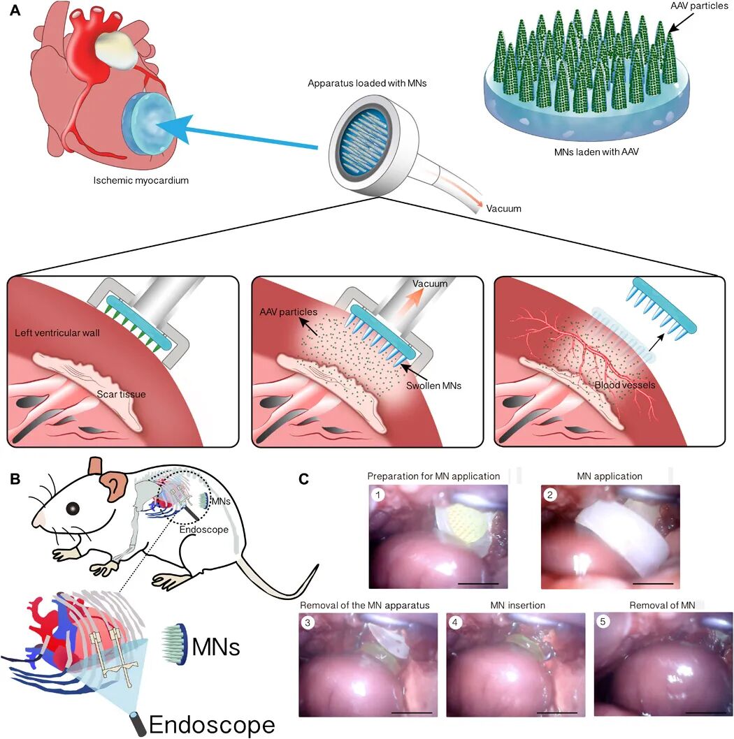 Hongpeng Shi, et al. Microneedle-mediated gene delivery for the treatment of ischemic myocardial disease. Science Advances 2020.