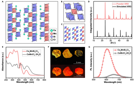 Jun-HuaWei, et al. All-Inorganic Lead-Free Heterometallic Cs4MnBi2Cl12 PerovskiteSingle Crystal with Highly Efficient Orange Emission, Matter,2020, 3, 1-12.