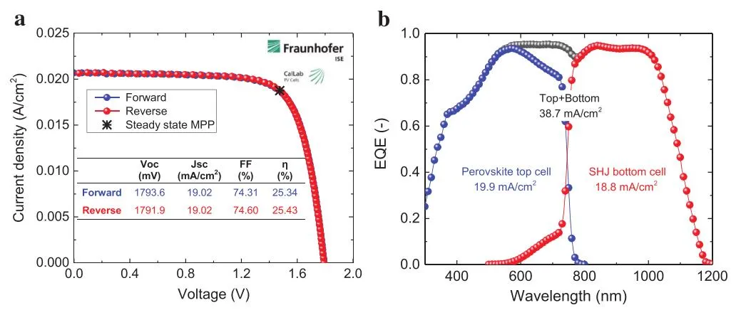 9. AEM: 活性面积1.1 cm2,25.2%效率的钙钛矿-硅叠层太阳能电池