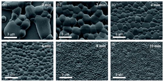 高质量钙钛矿薄膜的生长对器件的效率有重要影响,具有大晶粒、高结晶度的钙钛矿薄膜可以降低薄膜的缺陷和提高载流子迁移率,而光滑致密的形貌可以有效避免漏电流的产生。在成膜过程中,退火温度、溶剂氛围和前驱体浓度等生长条件的调控对于得到高质量的钙钛矿薄膜非常重要,但是目前还缺少简单而且重复性好的薄膜制备方法,尤其是在大面积薄膜的制备方面。此外晶粒形核和晶体生长的机制还不完善,缺少对钙钛矿薄膜的生长机理的理解。