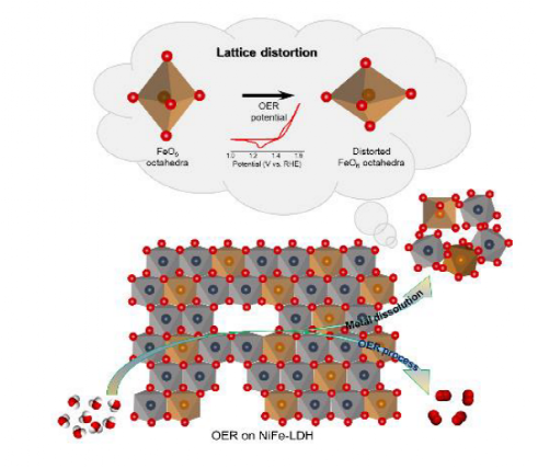 1)实验和理论研究结果表明,阳离子空位(尤其是M2+空位)提高了相邻金属离子与LDH片中氧的结合能,同时也缓解了晶格畸变,从而大大减轻了OER条件下金属在电解液中的溶解。进一步的研究发现,阳离子空位(尤其是M3+)空位)可以加速γ(NiFe)OH活性中心的演化,同时也优化了OER中间体在催化剂表面的结合能,从而提高了OER活性。