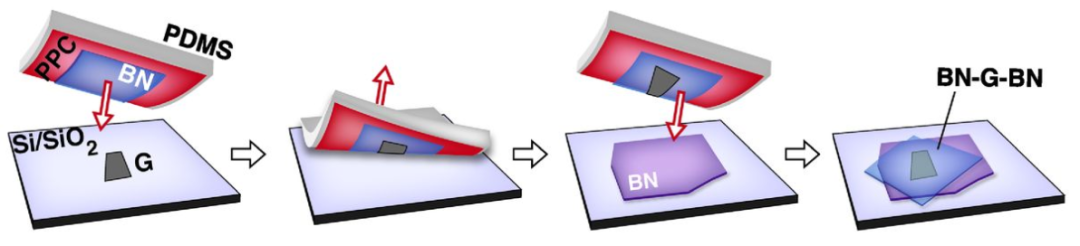 2013年,他发明了用单原子层“搭积木”的二维材料“pick-up”转移方法(图1),开创了二维材料同质、异质结这个科研方向。